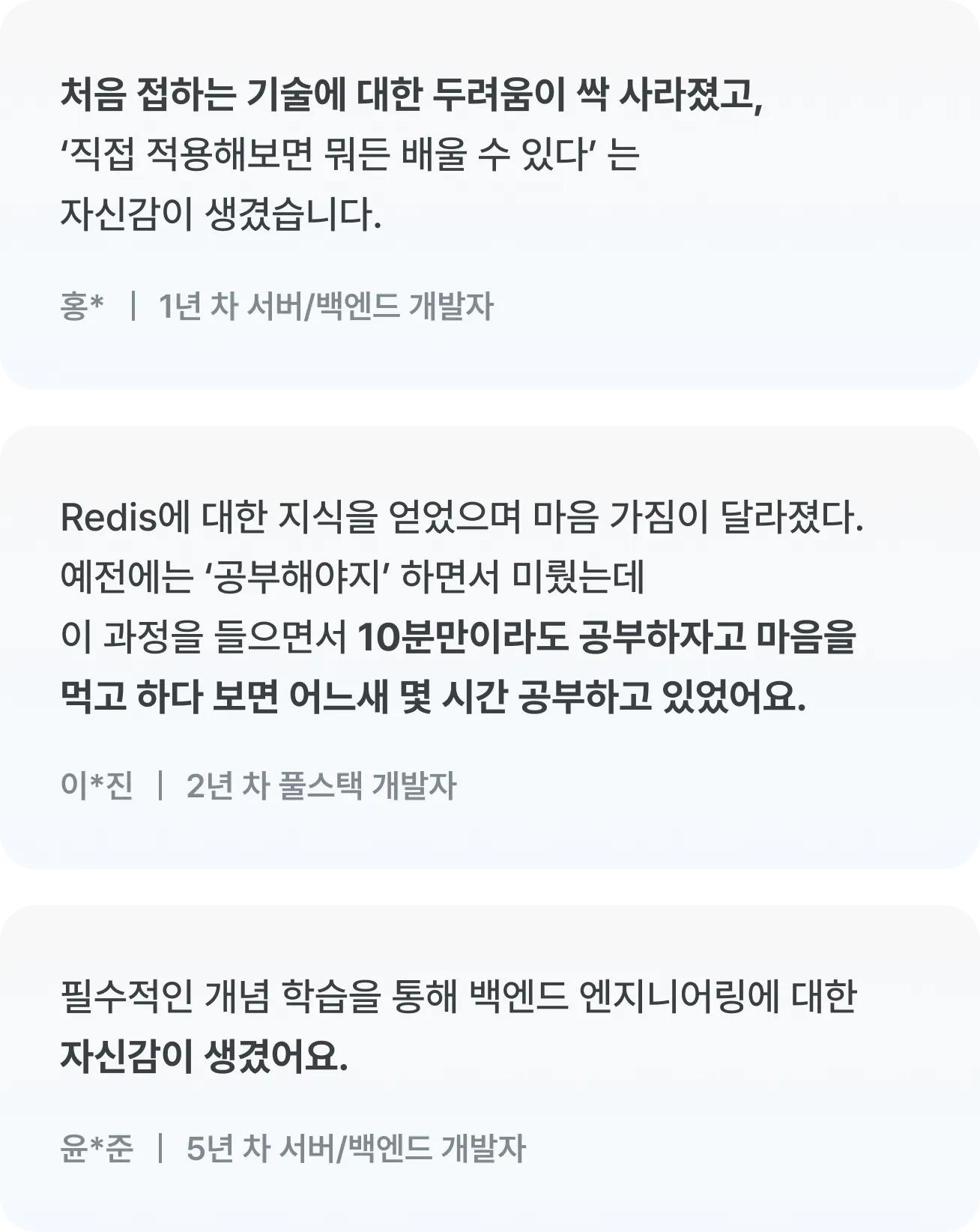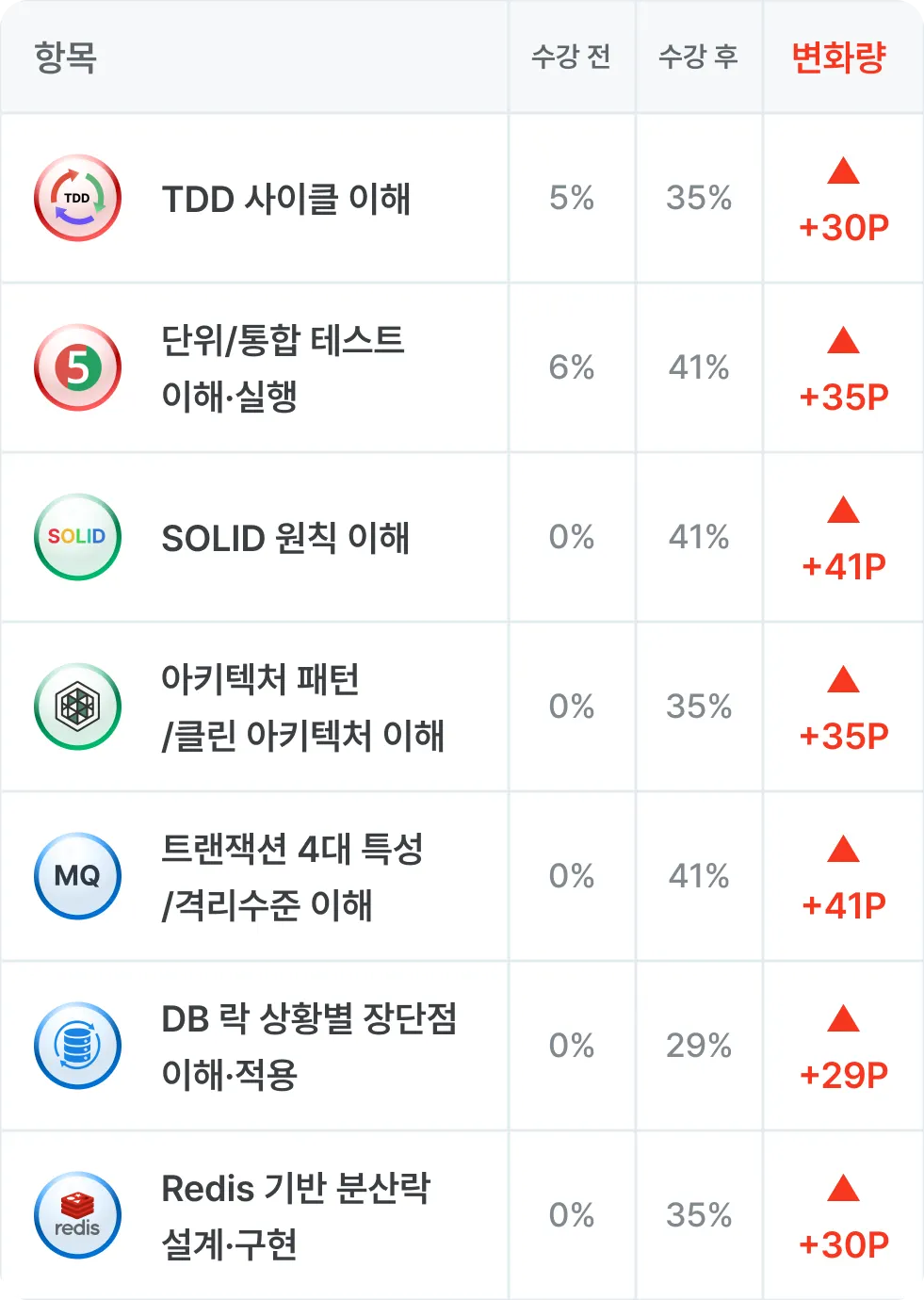 바쁜 일정 속에서도, 주 5~10시간 학습으로 성장할 수 있도록 설계했습니다.