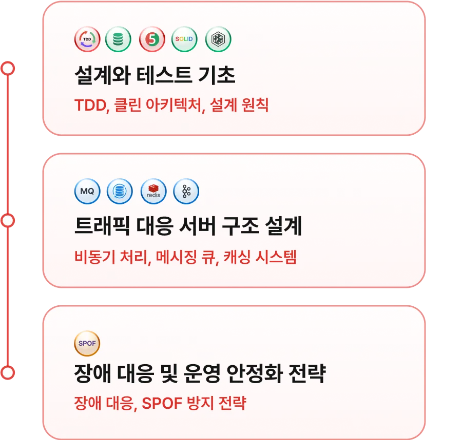 빅테크 기업의 유형별 시나리오 기반으로, TDD와 클린 아키텍처 원칙을 적용하여 실제 서비스를 개발합니다.